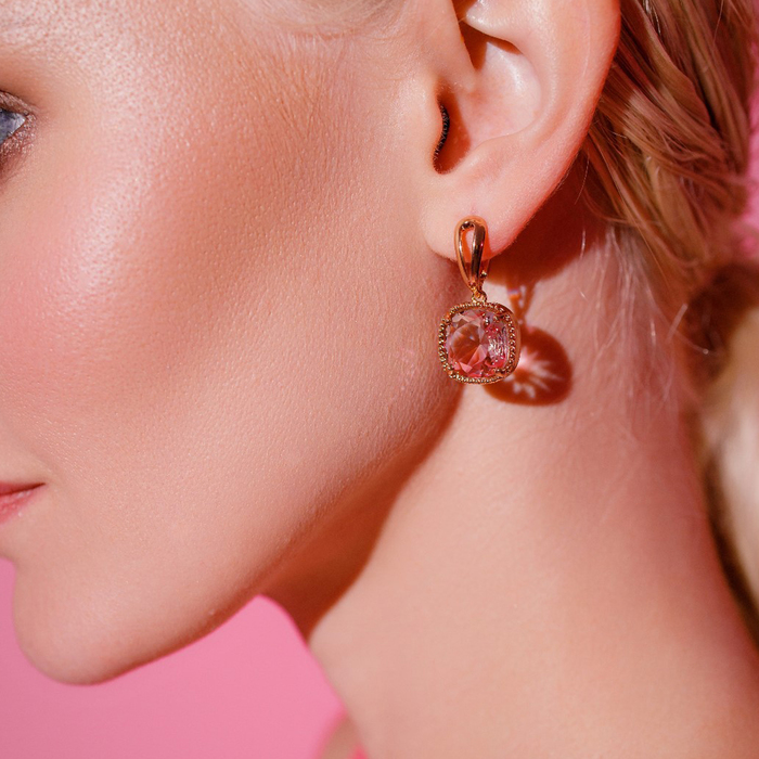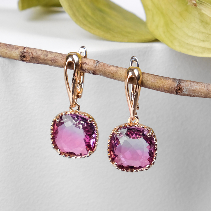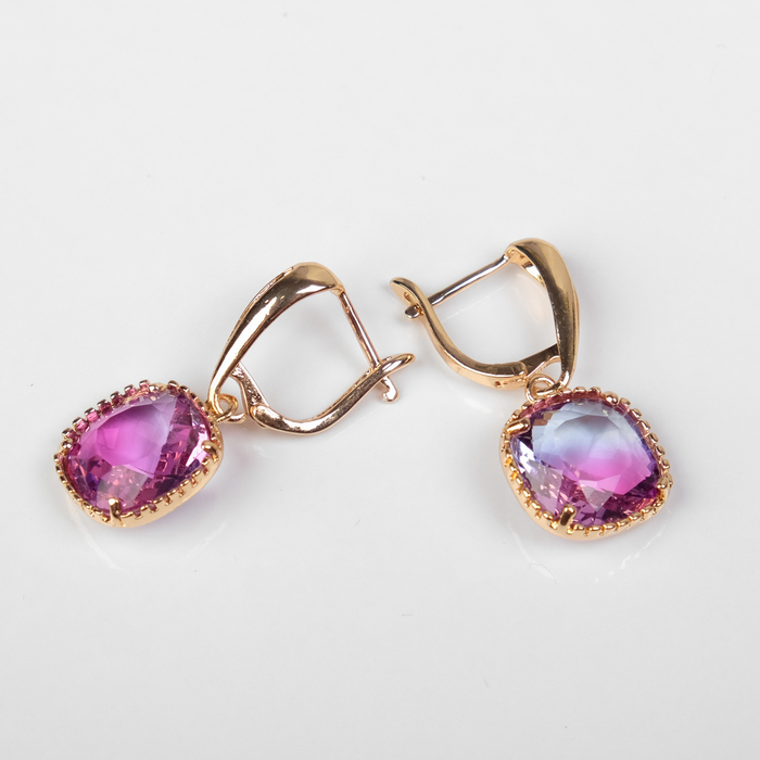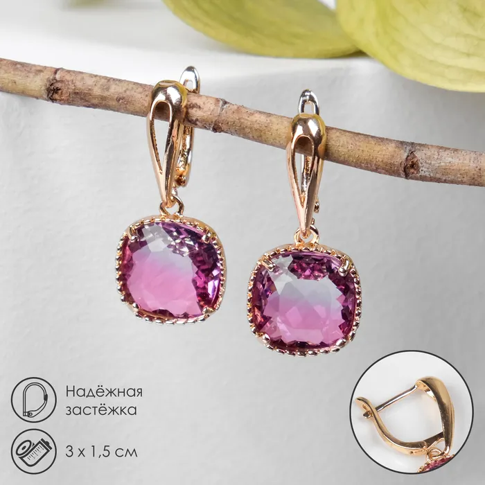 Серьги со стразами «Иллюзион» плавный квадрат, малиново-фиолетовые в золоте — Характеристики