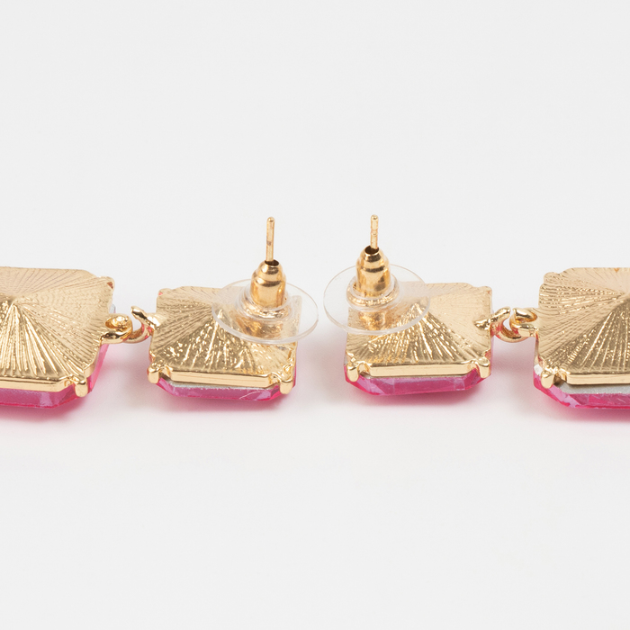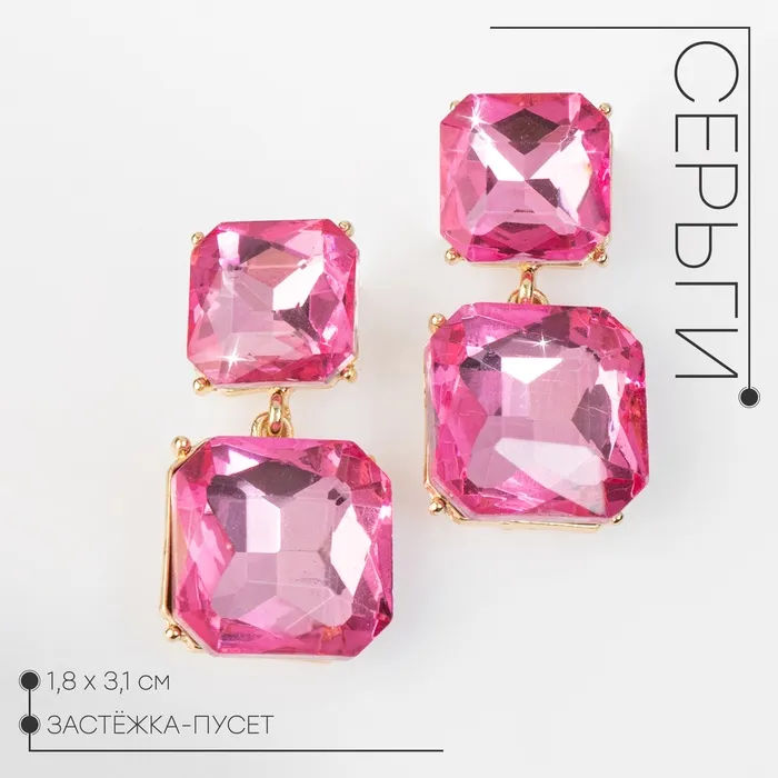Серьги со стразами «Иллюзион» полутона квадраты, розовые в золоте — Характеристики