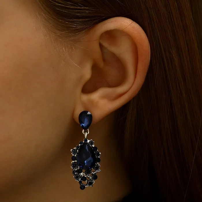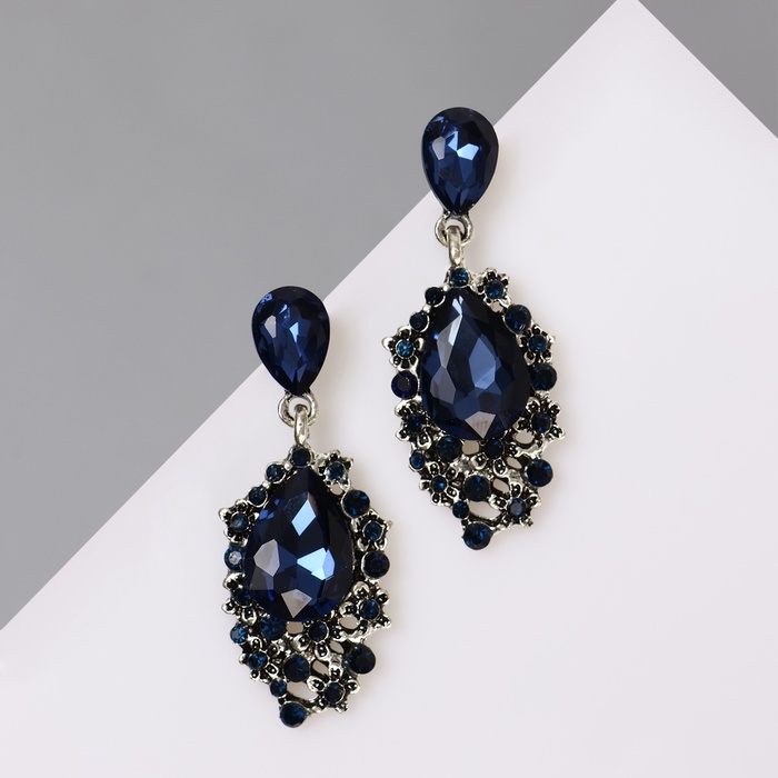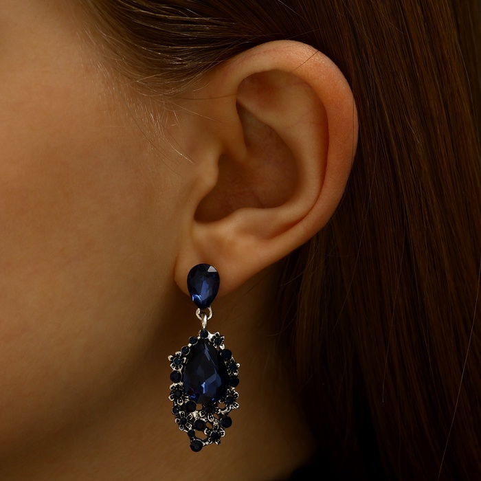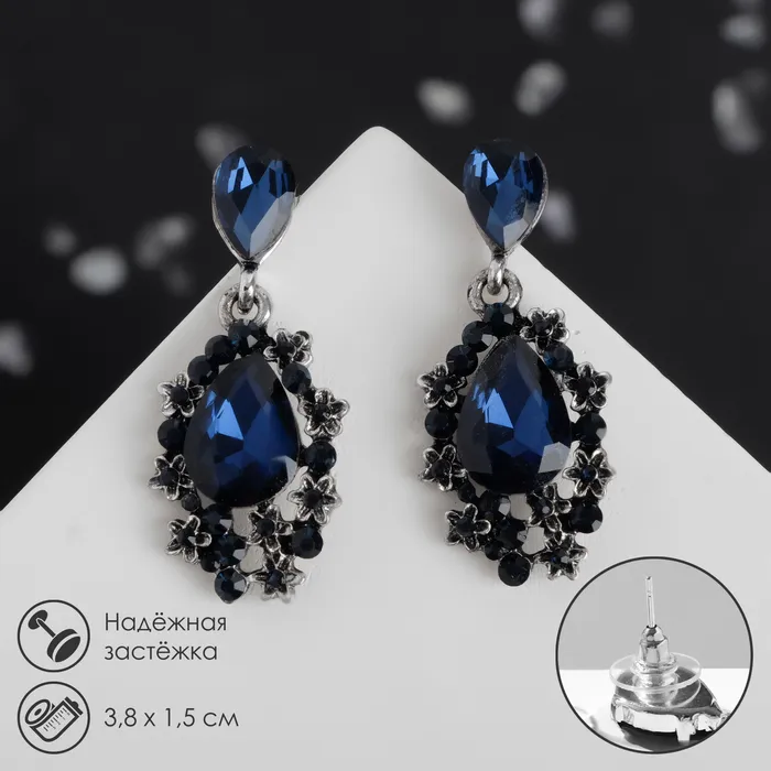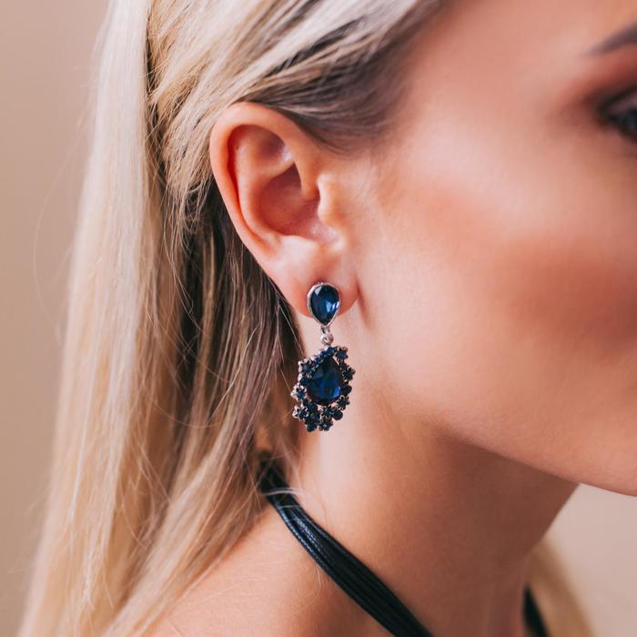Серьги со стразами «Карнавал» шик, синие в чернёном серебре — Характеристики