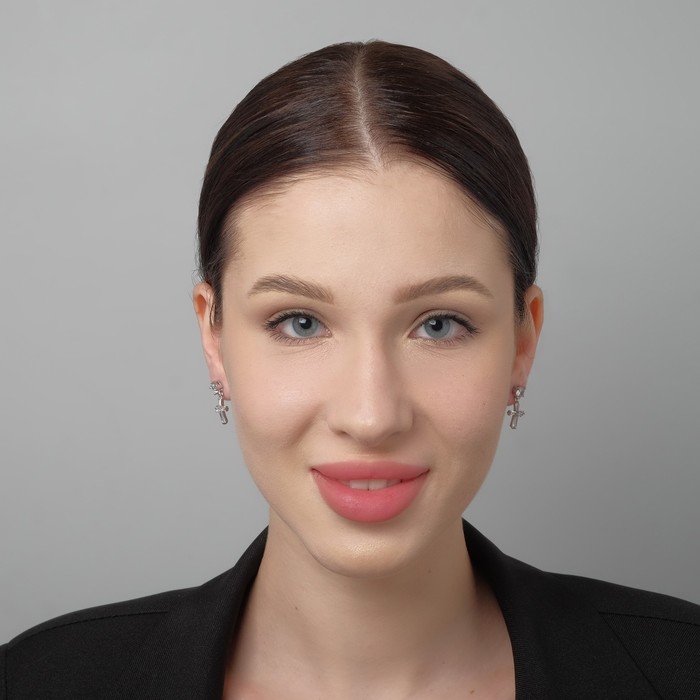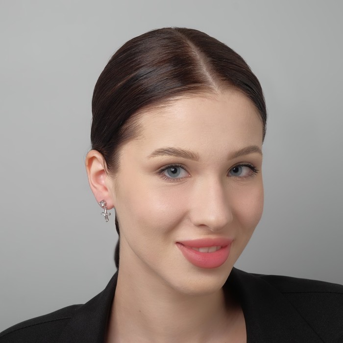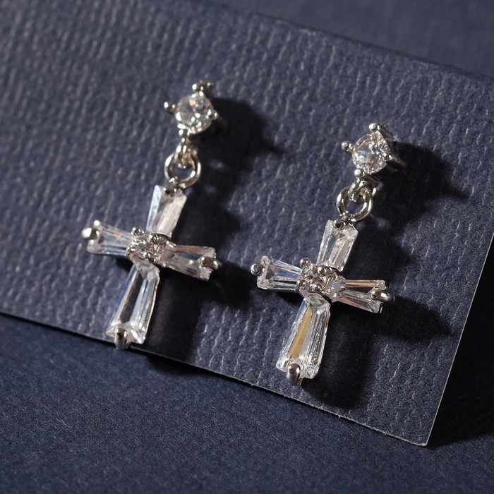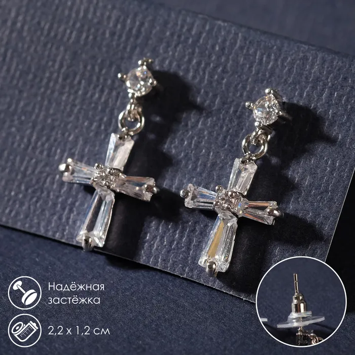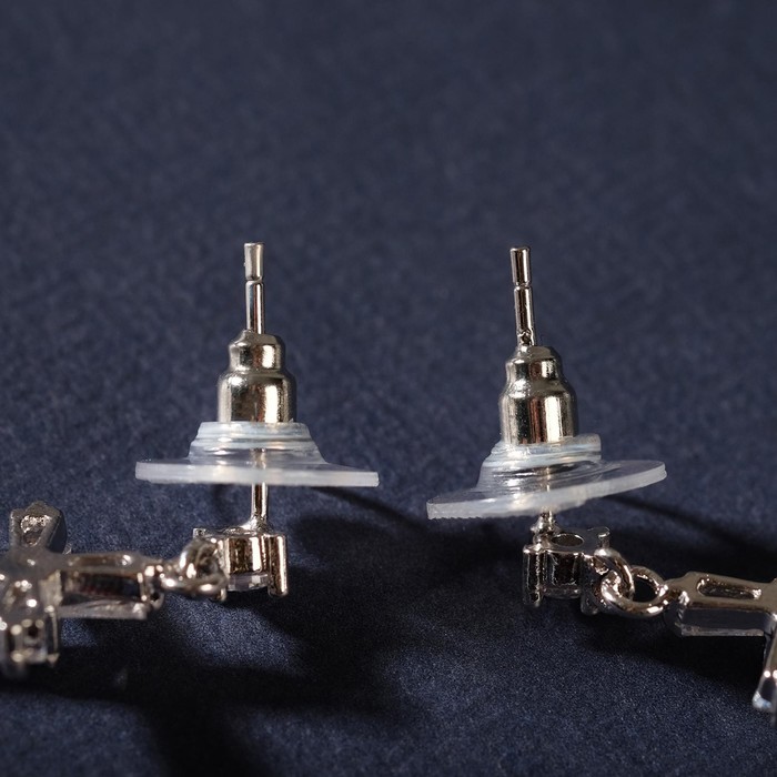 Серьги со стразами «Крестики искры» с пусетом, цвет белый в серебре — Характеристики