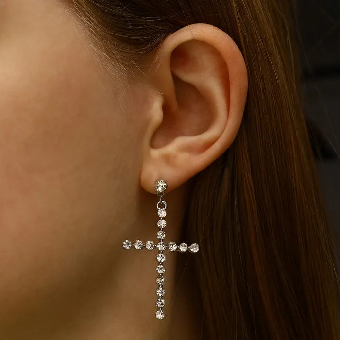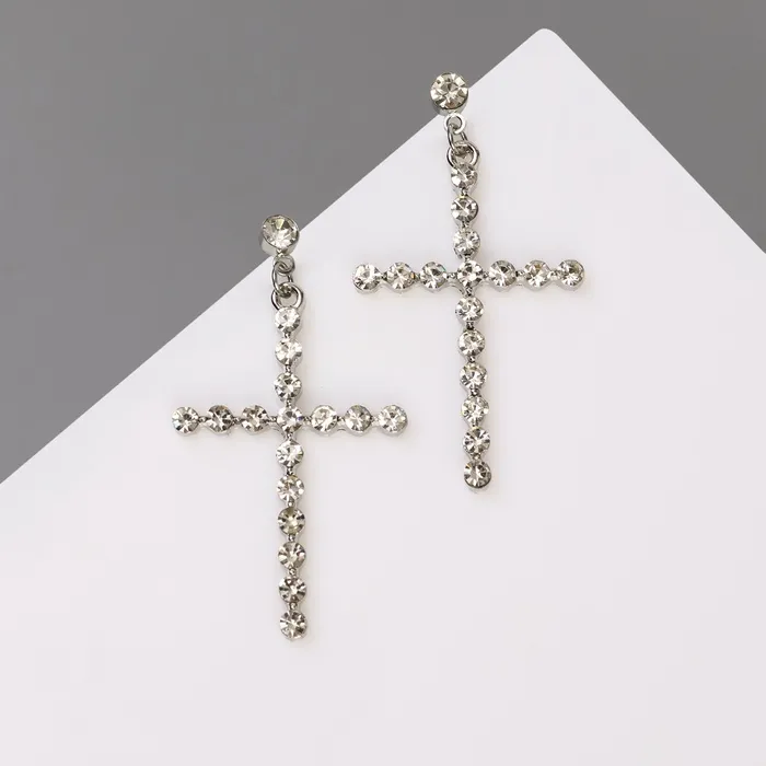 Серьги со стразами «Крестики» с делениями, белые в серебре — Характеристики