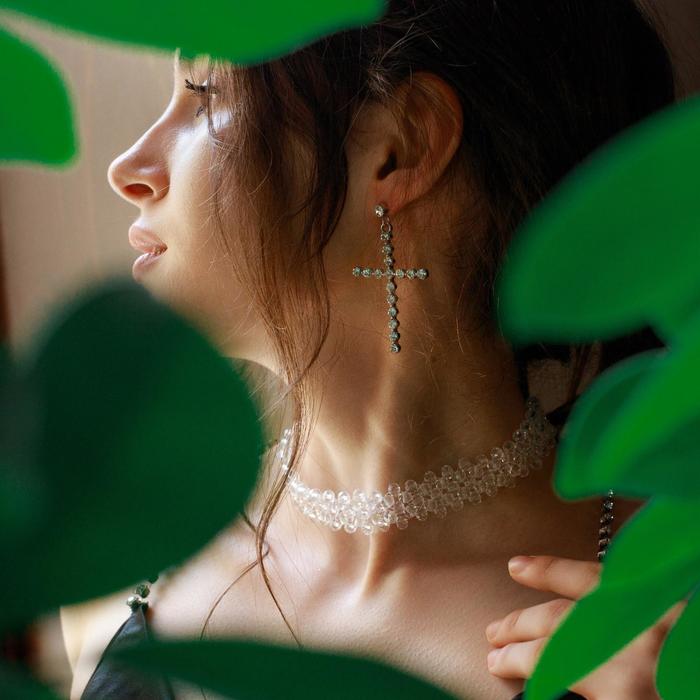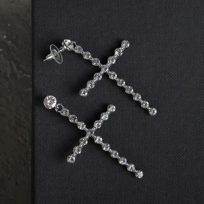 Серьги со стразами «Крестики» с делениями крупные, белые в серебре — Характеристики