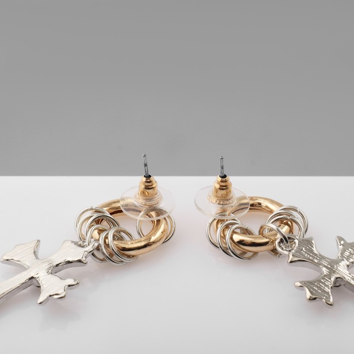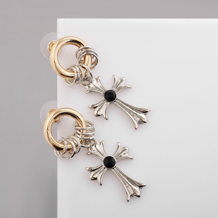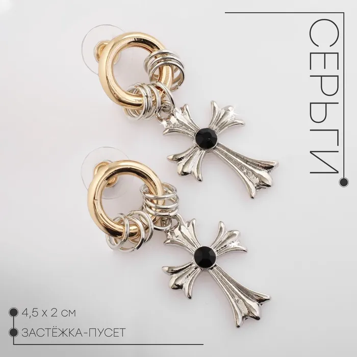 Серьги со стразами «Крестики» с колечками, цвет серебряно-золотой — Характеристики