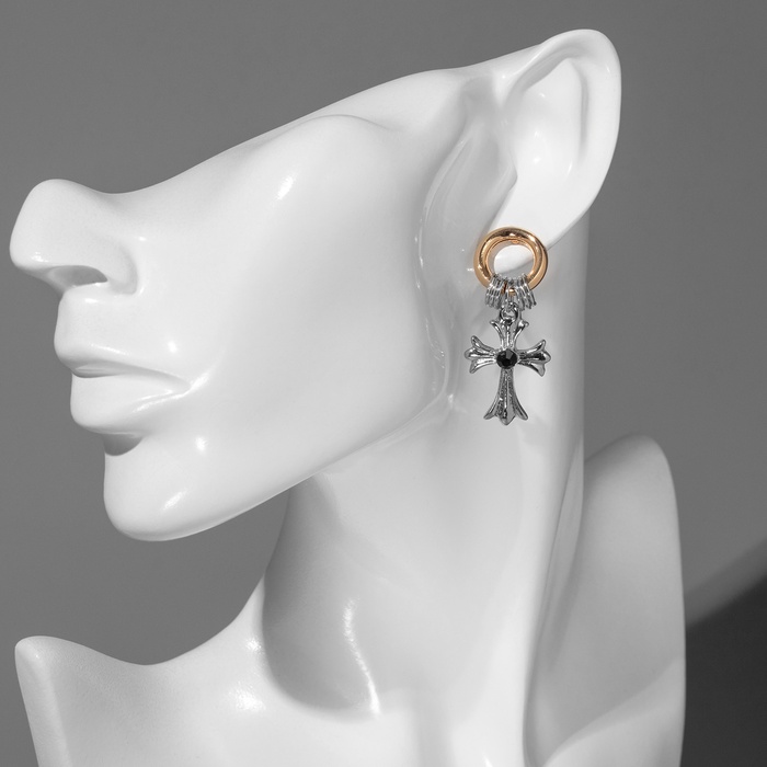 Серьги со стразами «Крестики» с колечками, цвет серебряно-золотой - яркий элемент на Хэллоуин, который порадует любого.