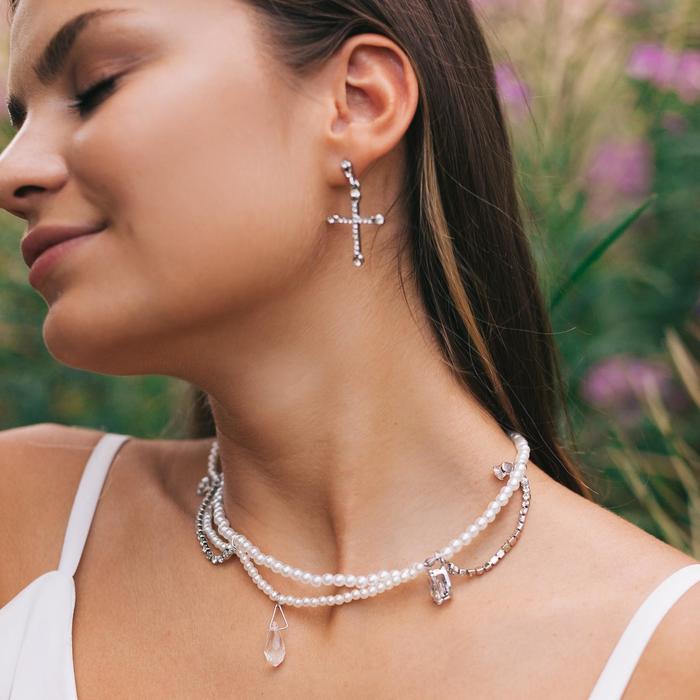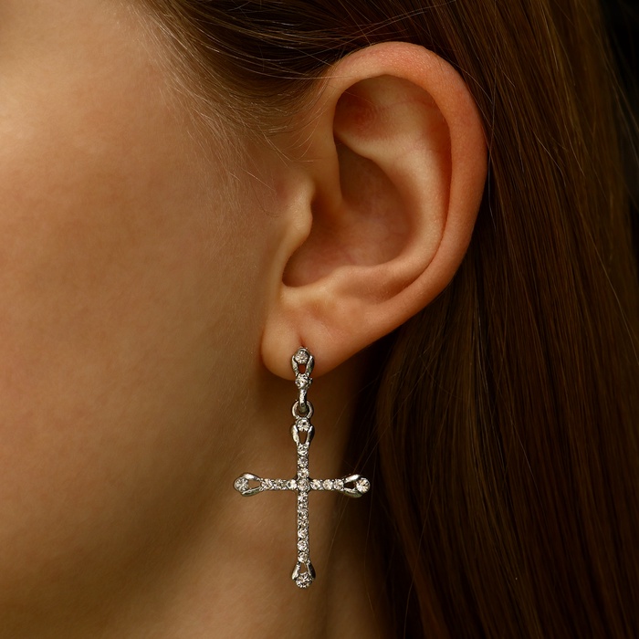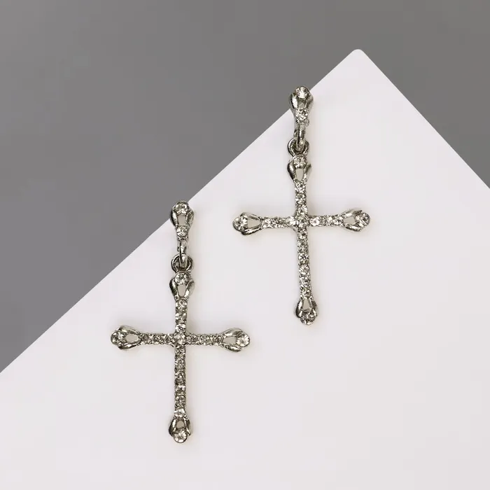 Серьги со стразами «Крестики» вставки, белые в серебре — Характеристики