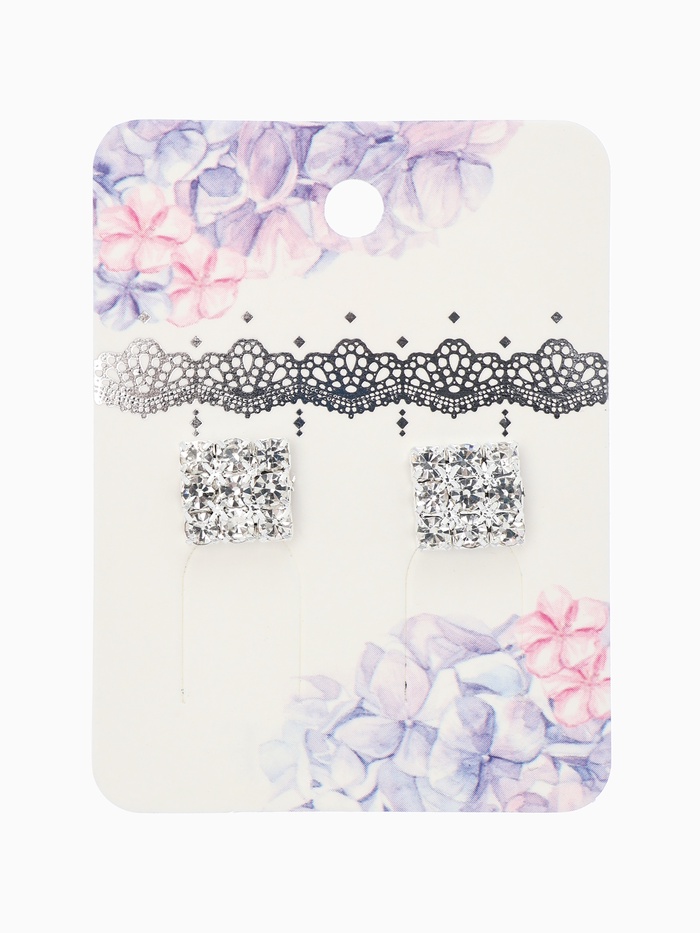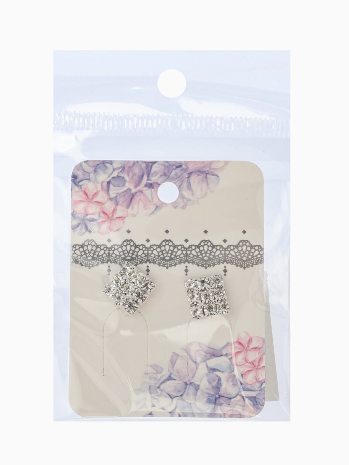 Серьги со стразами «Квадрат» 9×9 мм, белые в серебре — Характеристики