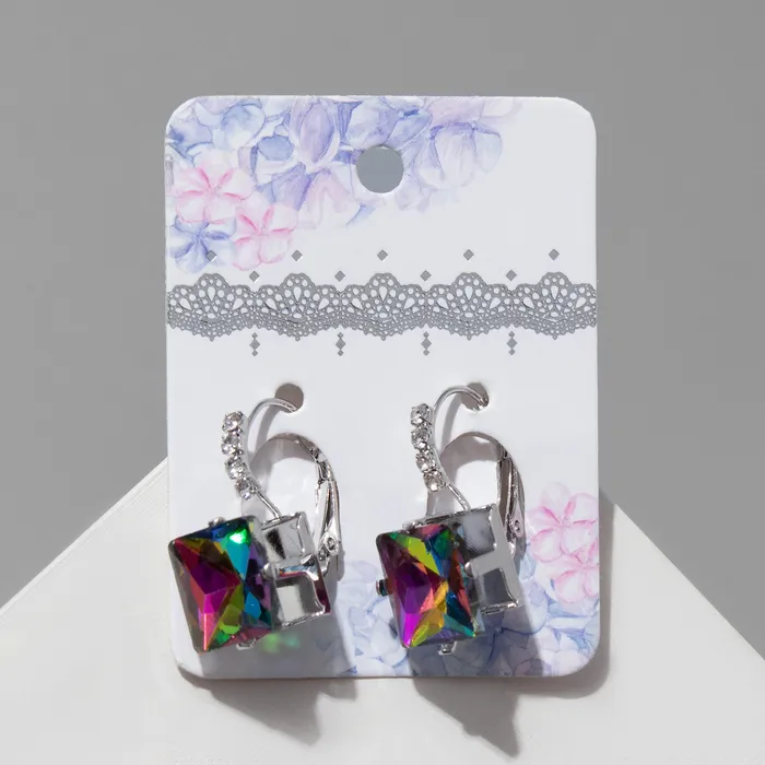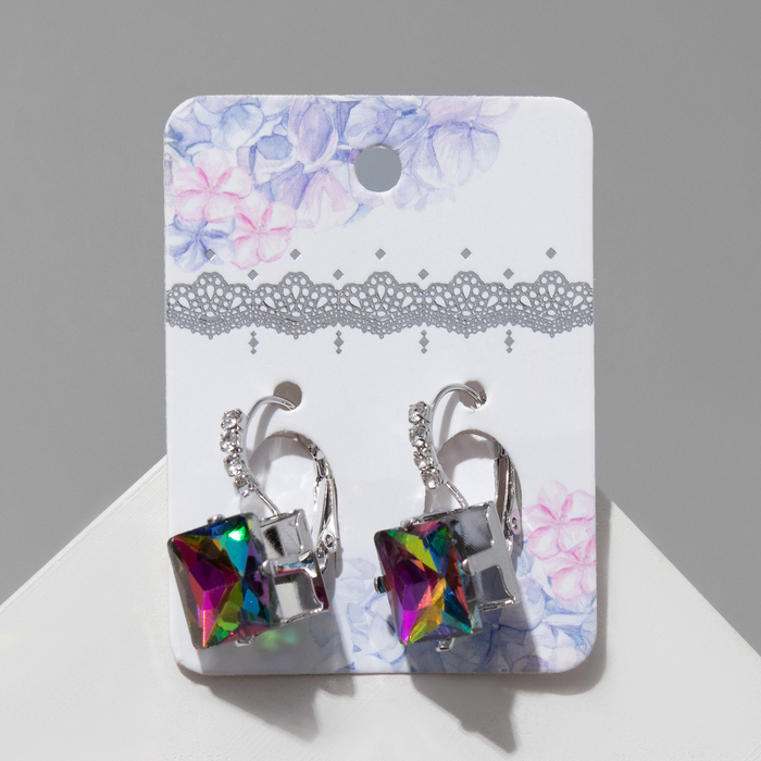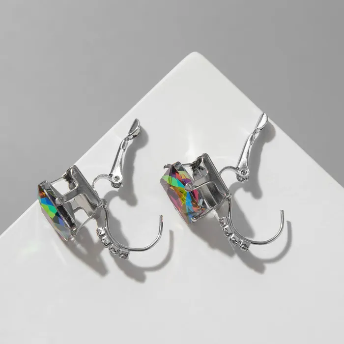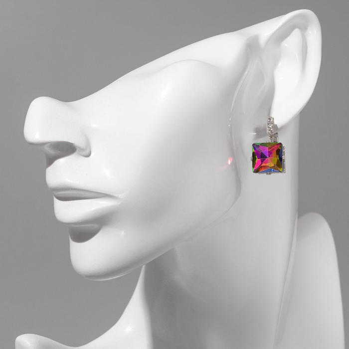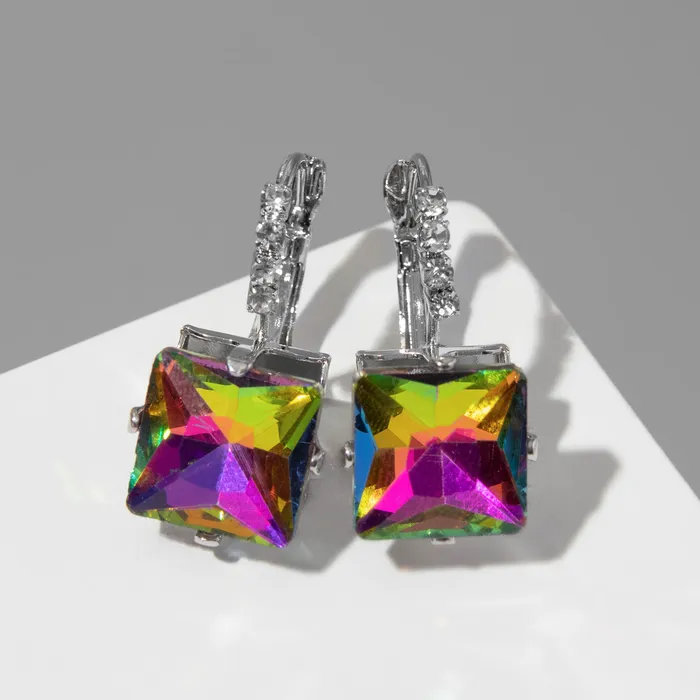 Серьги со стразами «Квадрат» мерцание, цвет бело-бензиновый в серебре — Характеристики