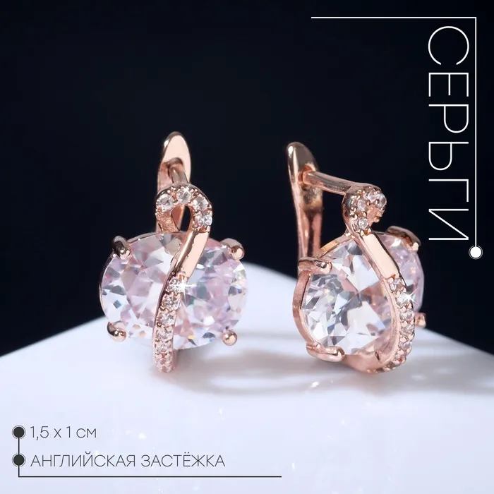Серьги со стразами «Магия» бусинка в сплетении, белые в розовом золоте — Характеристики