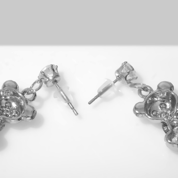 Серьги со стразами «Мишки» плюшевые с бантиками, белые в серебре — Характеристики