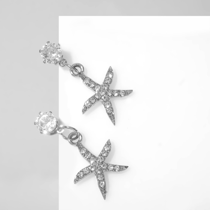 Серьги со стразами «Морская звезда», белые в серебре — Характеристики