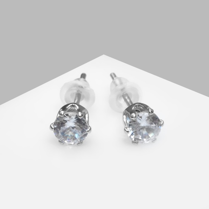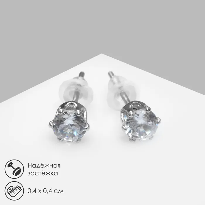 Серьги со стразами «Пусеты» сияние, круг, d=0.4, белые в серебре — Характеристики
