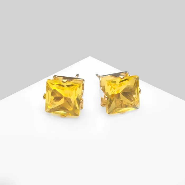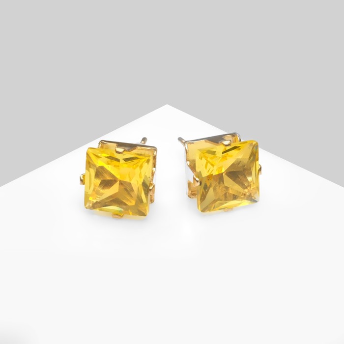 Серьги со стразами «Пусеты» сияние, квадрат, d=0.8, жёлтые в золоте — Характеристики