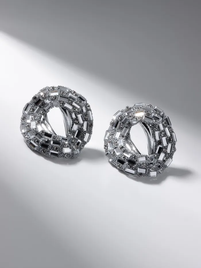 Погрузитесь в мир элегантности и изысканности с удивительными серьгами, которые подарят вашему образу неповторимый блеск. Эти стильные серьги с дизайном "бублик", украшенные блестящими стразами в белом цвете, являются идеальным аксессуаром для любой женщины, стремящейся подчеркнуть свою индивидуальность и утончённый вкус.