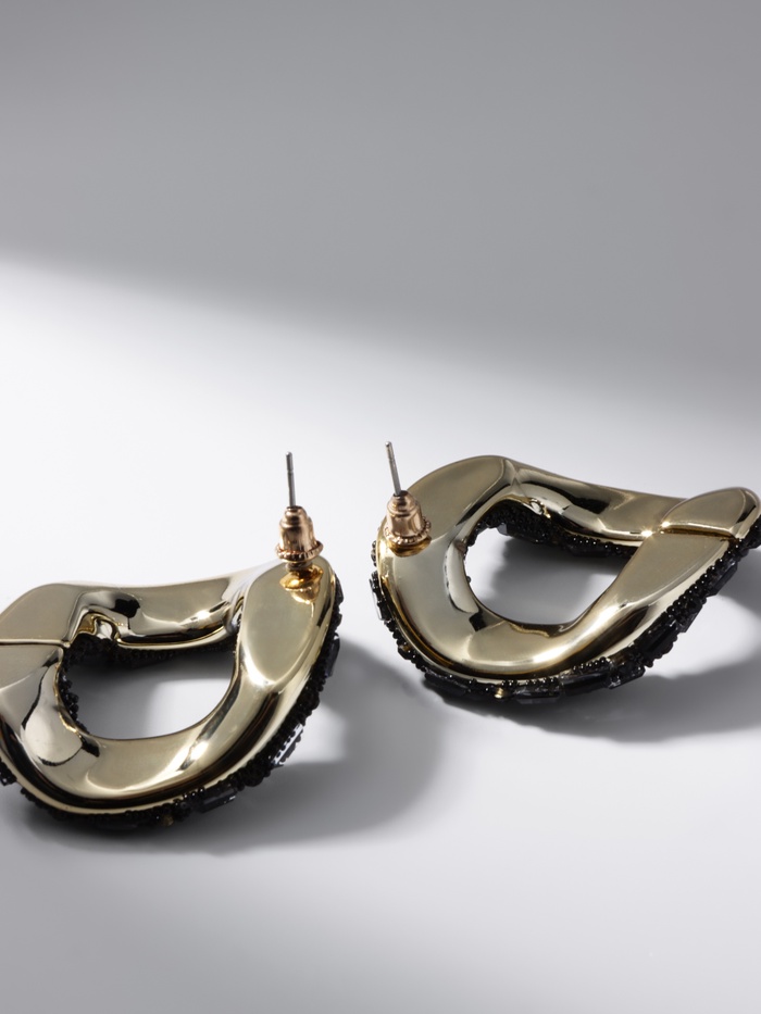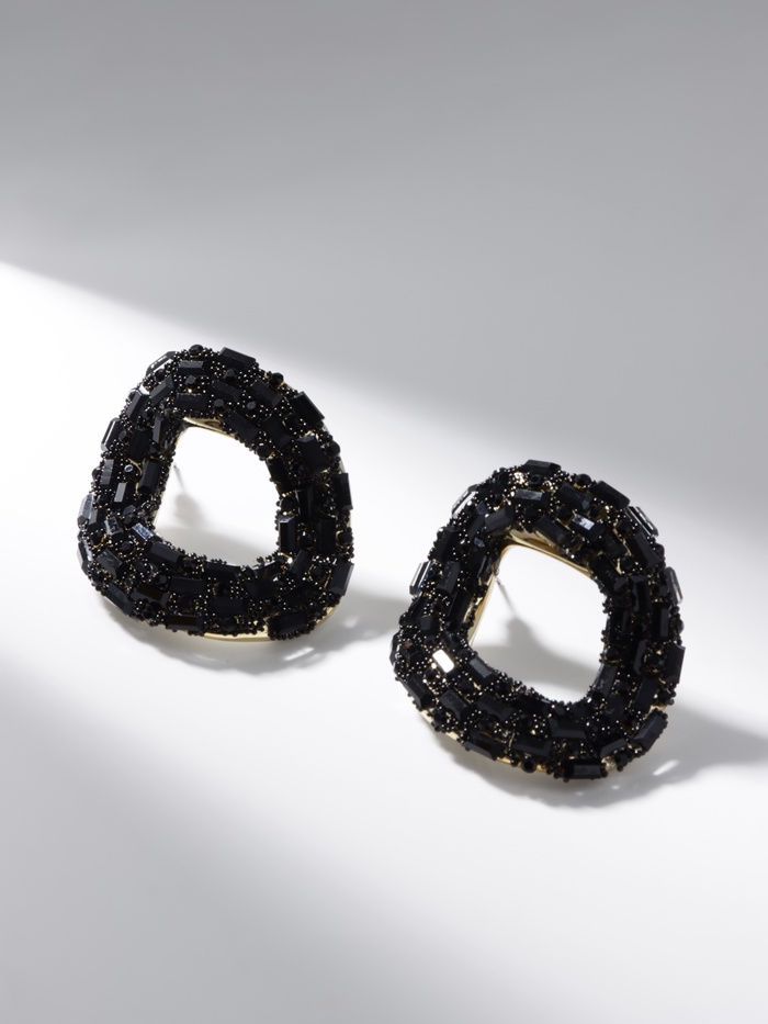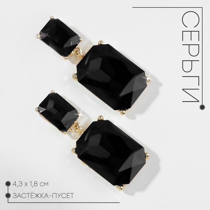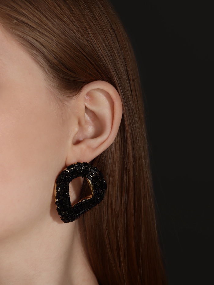 Серьги со стразами QF «Блеск» бублик, чёрные в золоте — Характеристики