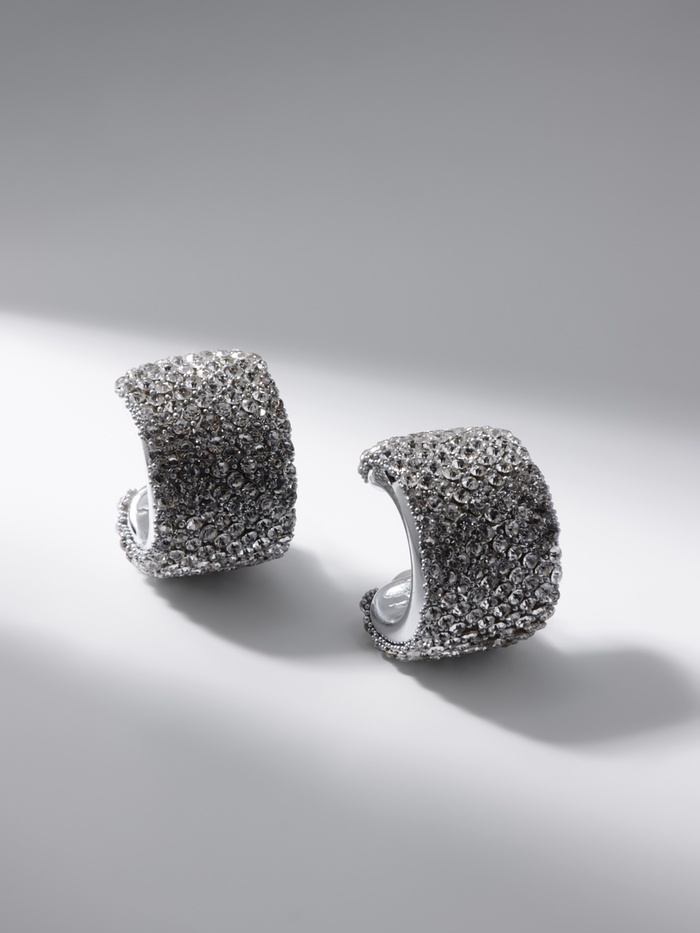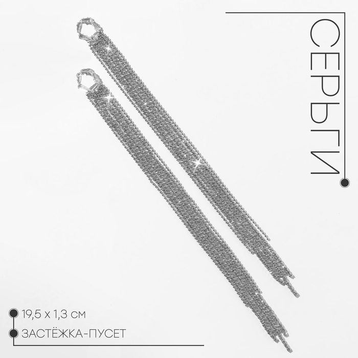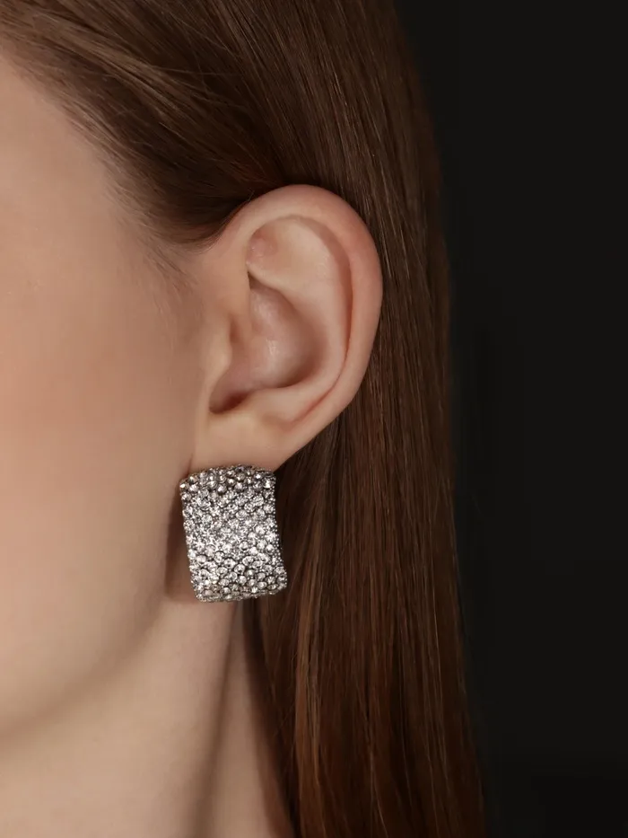 Изготовленные из качественной меди и декорированные стеклянными стразами, они придают уникальность каждому вашему наряду. Серебристая фурнитура подчеркивает их утончённость, а белый цвет страз делает серьги универсальными для любого стиля и цветовой гаммы. Эти серьги легко комбинируются с другими украшениями, что позволяет вам создавать неповторимые образы .