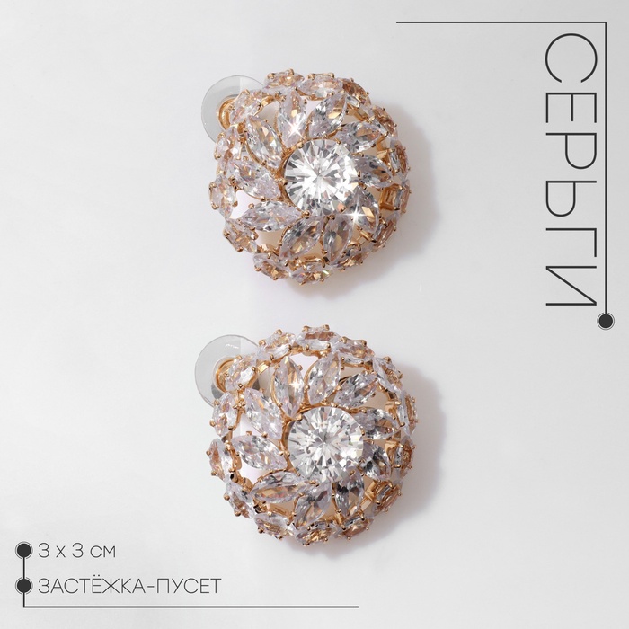 Каждая пара серег изготовлена из качественного металла с вставками из блестящих страз, что обеспечивает не только великолепный внешний вид, но и долговечность. Яркие стразы создают эффект мерцания, добавляя нотку роскоши и изысканности. Цвет фурнитуры — золотистый, что делает их универсальными и легко сочетаемыми с другими украшениями.