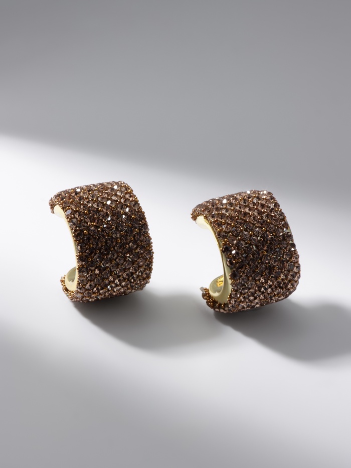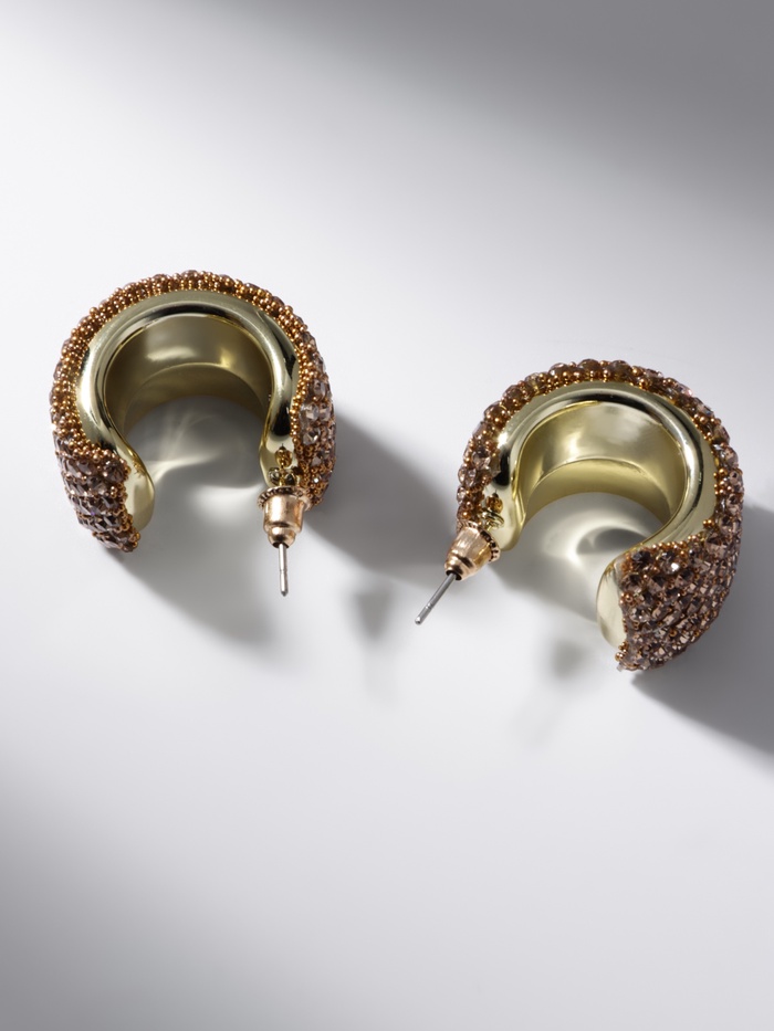 С серьгами со стразами в золотистой дуге вы станете настоящей звездой любого события, не оставляя равнодушными окружающих. Подчеркните свою индивидуальность и стиль с этим изысканным аксессуаром, который является настоящим must-have в вашей коллекции бижутерии!