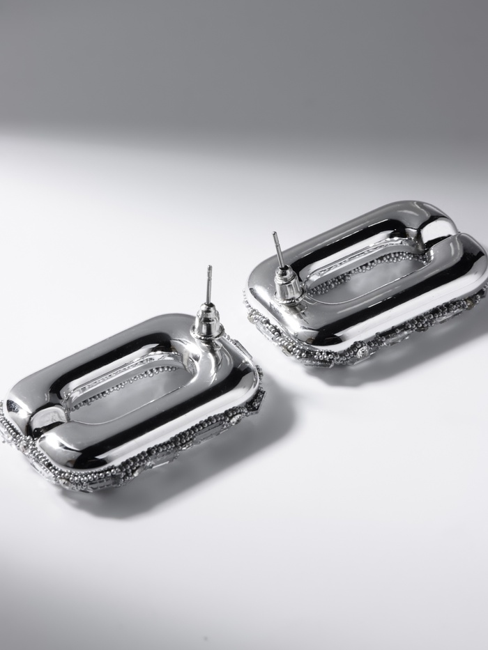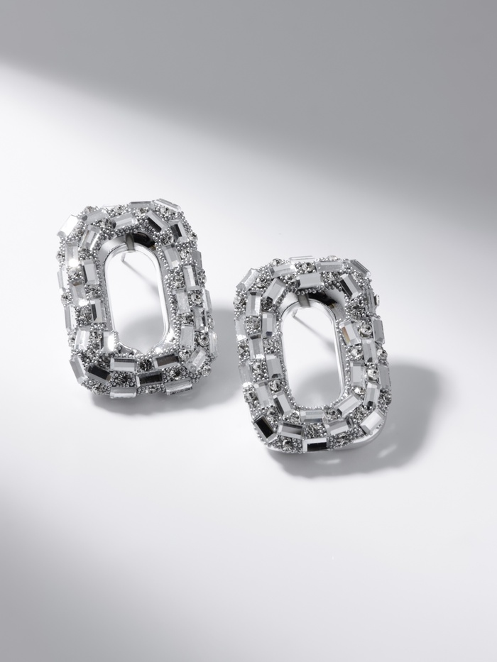 Серьги со стразами QF «Блеск» мягкий прямоугольник, белые в серебре — Характеристики