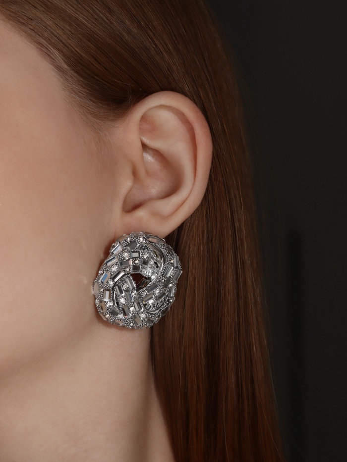 Откройте для себя изысканную элегантность, которая добавит особый шарм вашему образу — серьги со стразами «Блеск». Эти великолепные украшения, выполненные из высококачественной меди с серебряным покрытием, отличаются уникальным переплетением и прекрасно подойдут для любого случая, от праздников до повседневных встреч.