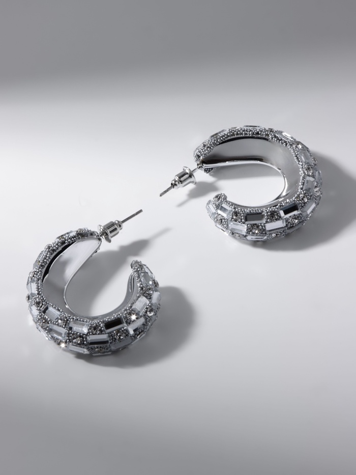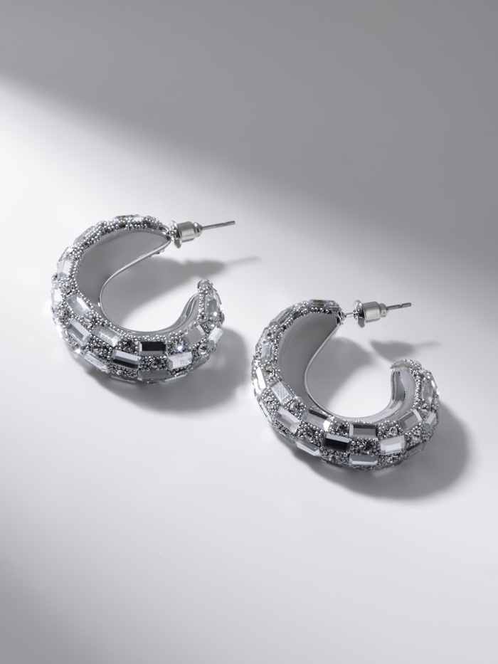 Серьги со стразами QF «Блеск» прямоугольники, 3.5×3×1 см, белый в серебре — Характеристики