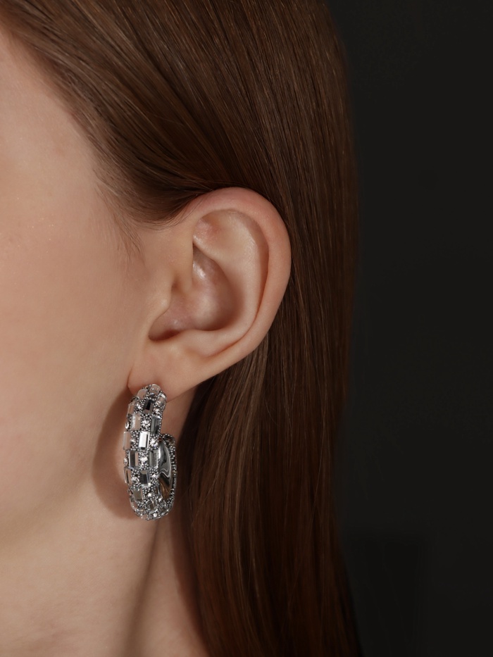 - Изысканный стиль: прямоугольная форма и блестящий белый цвет со стразами делают эти серьги настоящим произведением искусства.