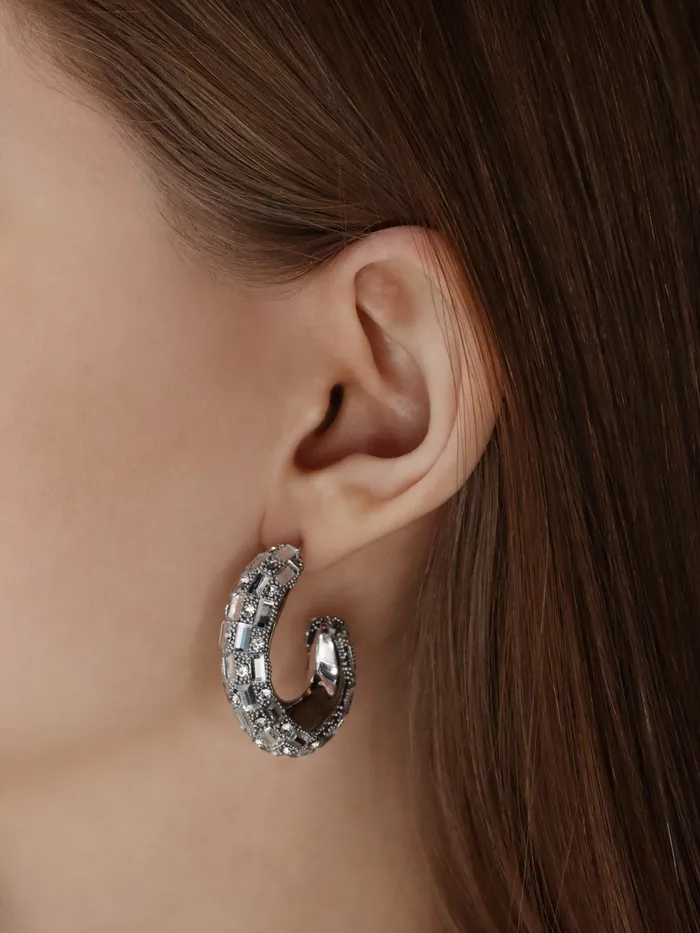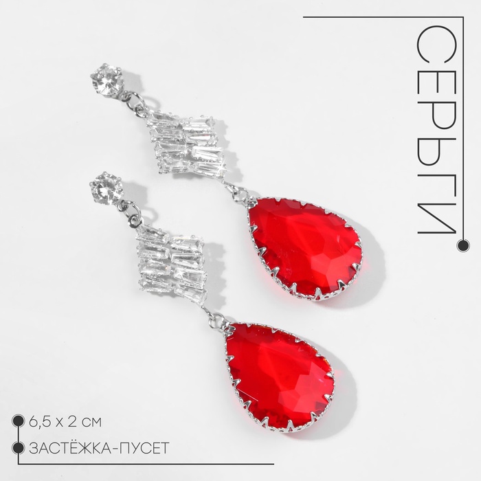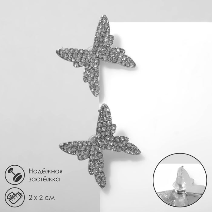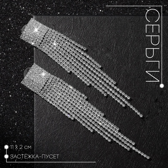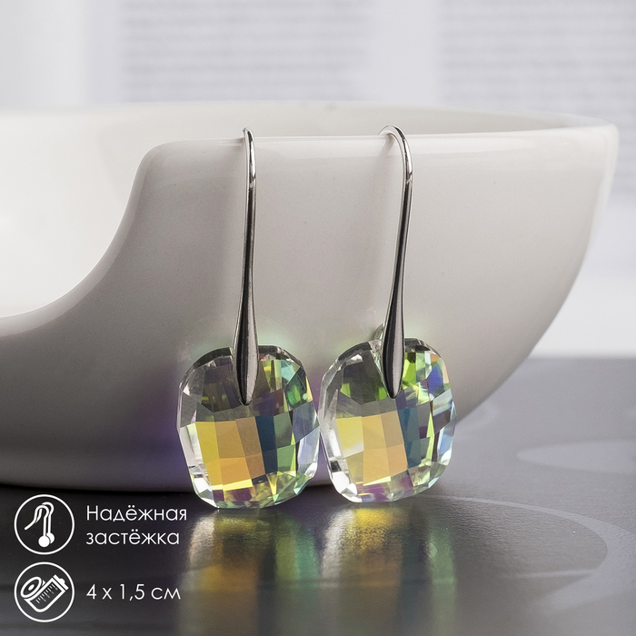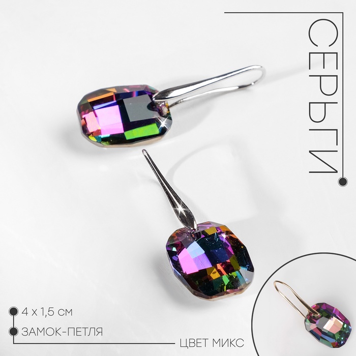 Серьги со стразами QF «Блеск» прямоугольники, 3.5×3×1 см, белый в серебре — Характеристики
