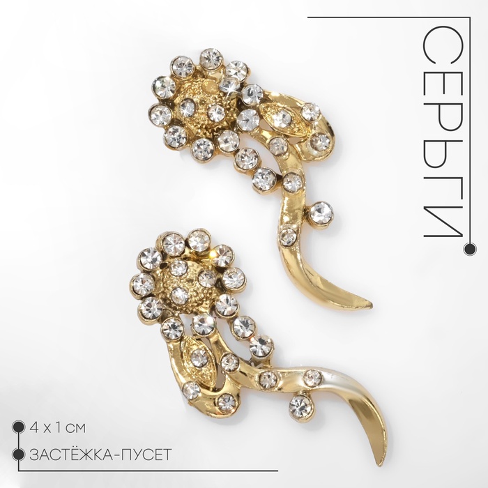 Каждая деталь этих серег проработана с любовью и вниманием. Изготовленные из качественного металла и эффектных страз, серьги имеют размер 3.5×3×1 см, что делает их идеальными для повседневной носки и особых случаев. Застёжка пусет обеспечивает надежную фиксацию, не причиняя дискомфорта при ношении, а их универсальный дизайн подходит к любому наряду!