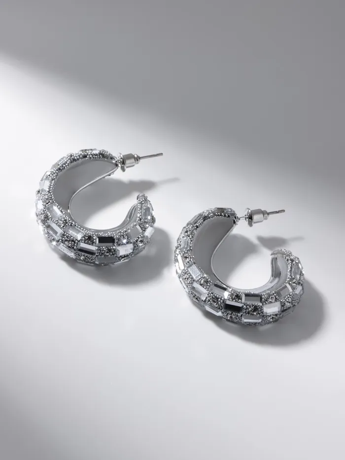 - Изысканный стиль: прямоугольная форма и блестящий белый цвет со стразами делают эти серьги настоящим произведением искусства.