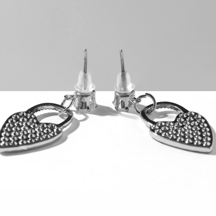 Серьги со стразами «Сердца» замки, цвет белый в серебре — Характеристики