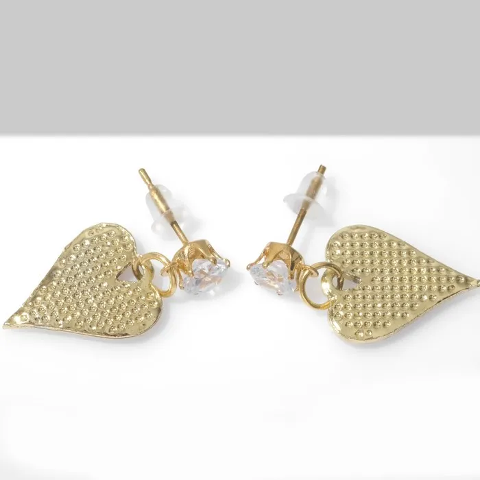 Серьги со стразами «Сердце» изящное, белые в золоте — Характеристики