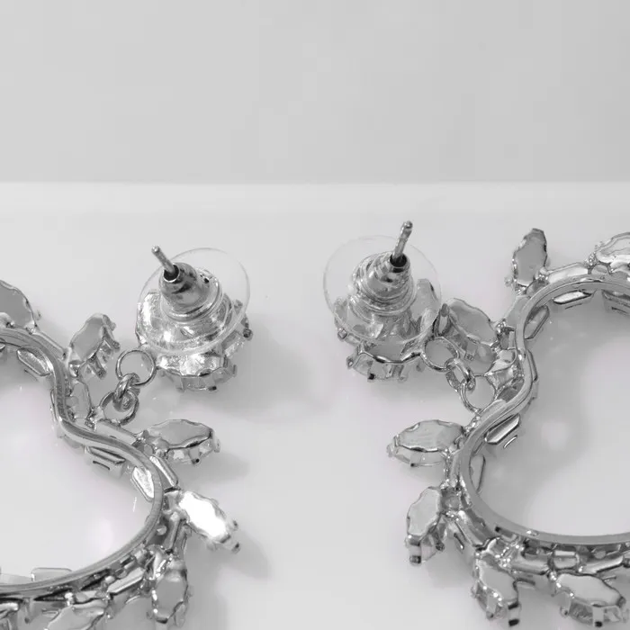 Серьги со стразами «Сердце» контур в листьях, белые в серебре — Характеристики