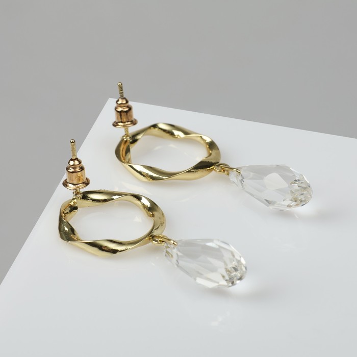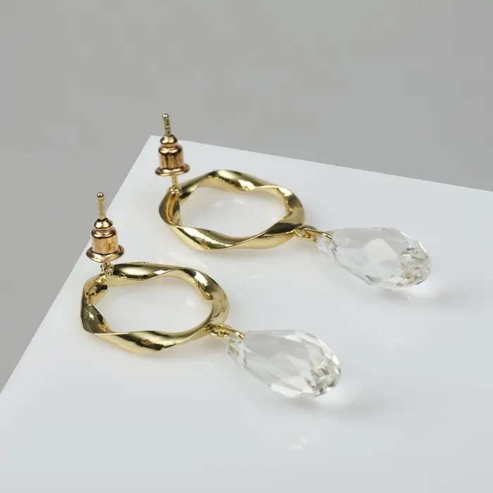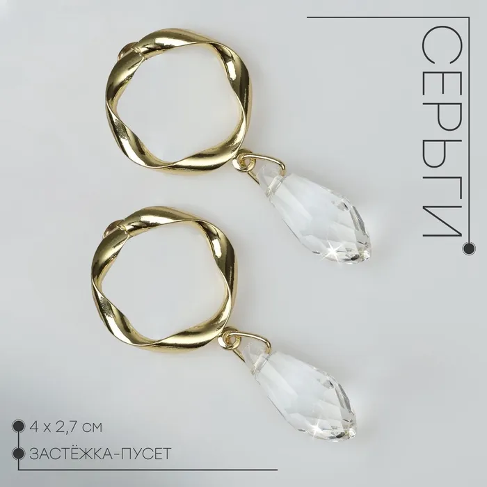 Серьги со стразами «Сиа» капли, белые в золоте — Характеристики