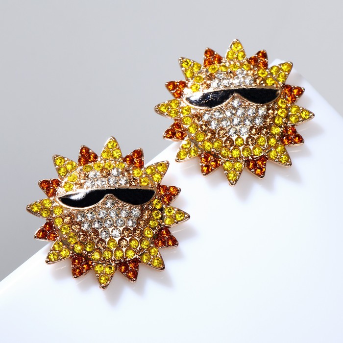 Серьги со стразами «Солнце» в очках, чёрно-жёлтые в золоте — Характеристики