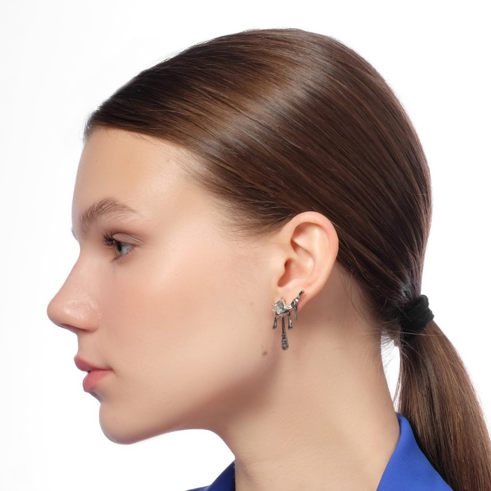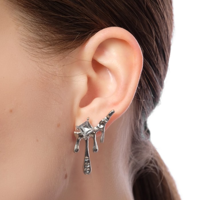 Серьги со стразами «Таяние» ромб, цвет белый в серебре — Характеристики