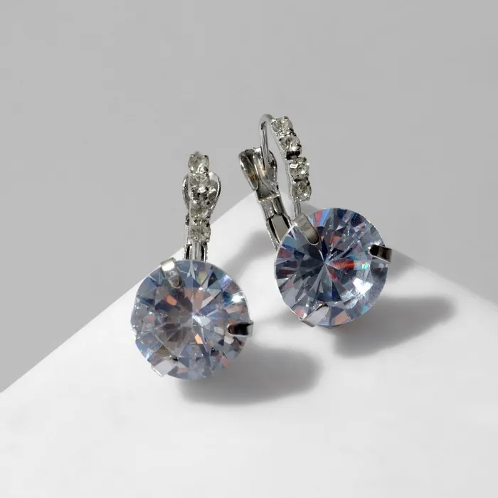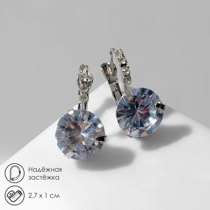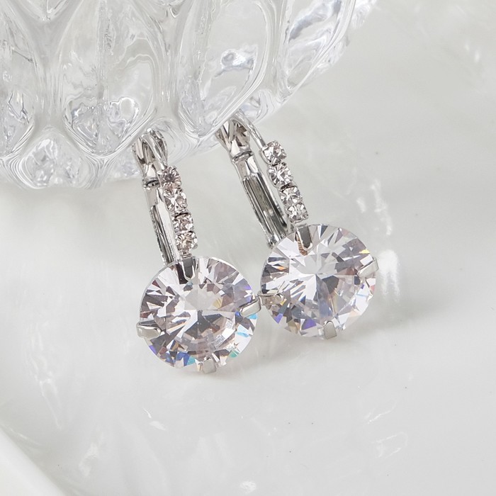 Серьги со стразами «Циркония» мини, круг, белые в серебре — Характеристики