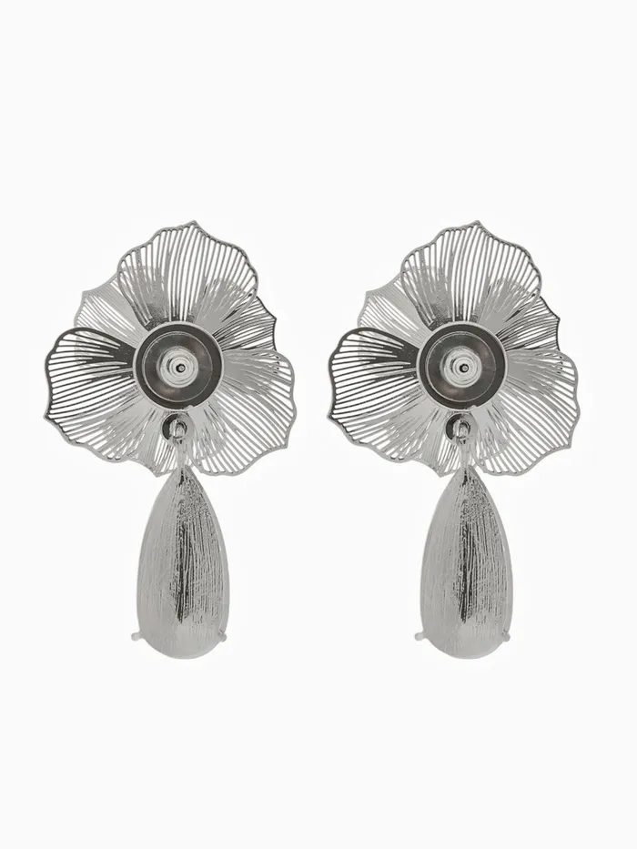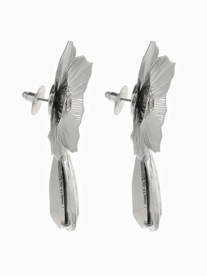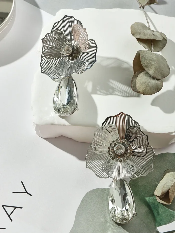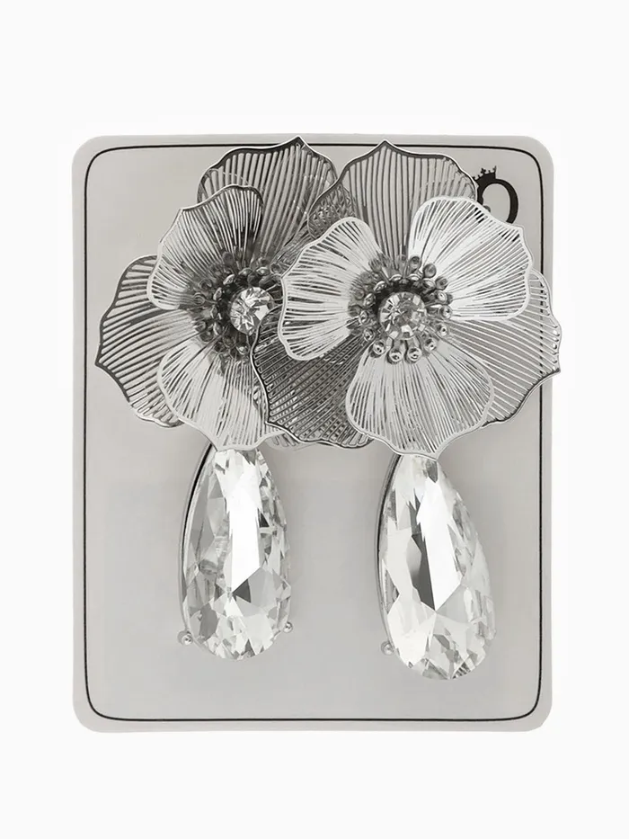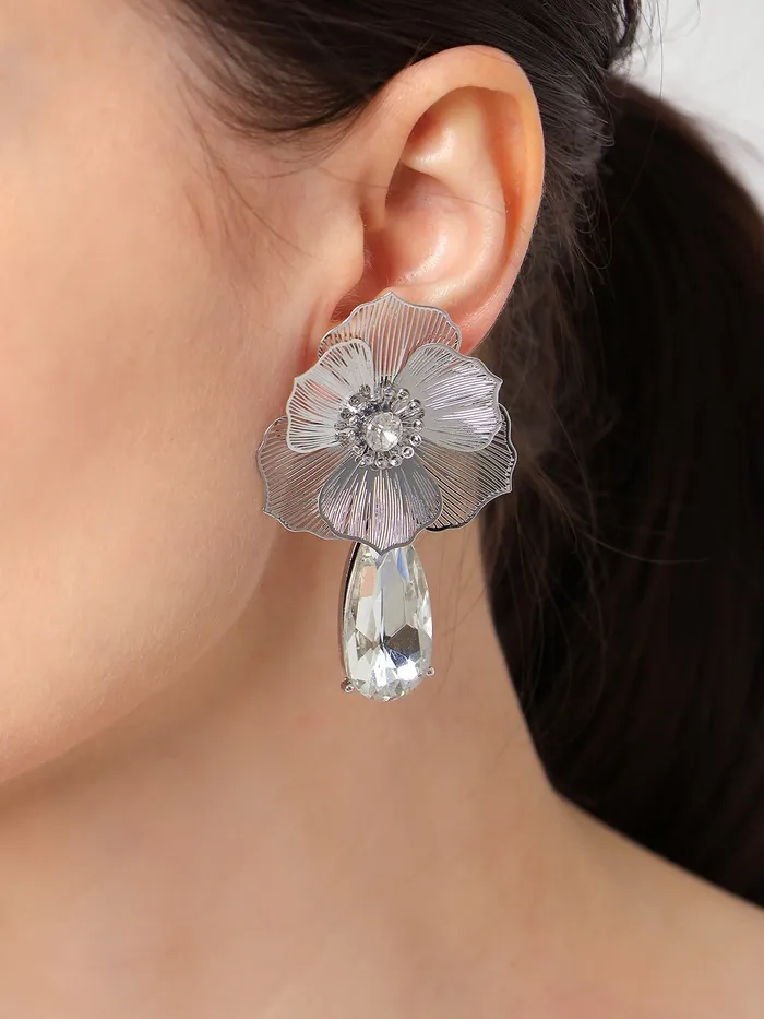 Серьги со стразами «Цветок» капелька, цвет серебро — Характеристики