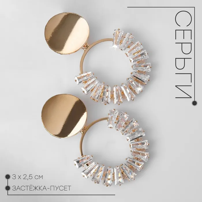 Серьги со стразами «Вспышка» круг, белые в золоте — Характеристики