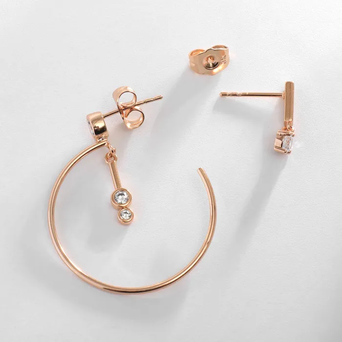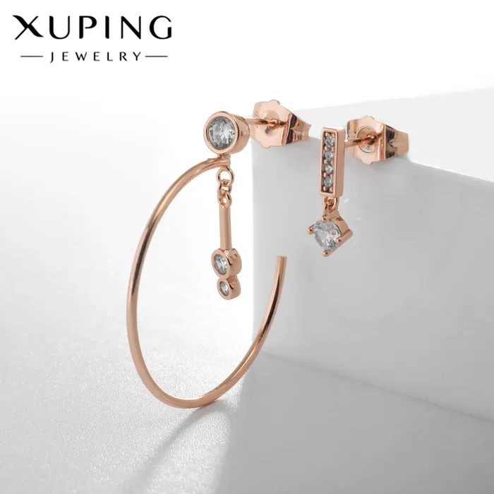 Серьги со стразами XUPING круг с дополнением, белые в розовом золоте — Характеристики