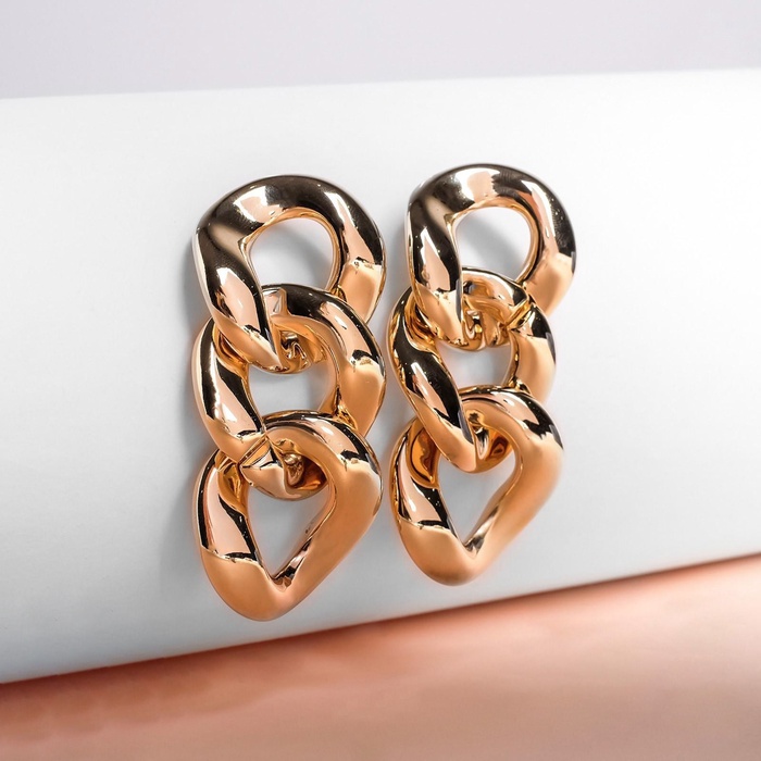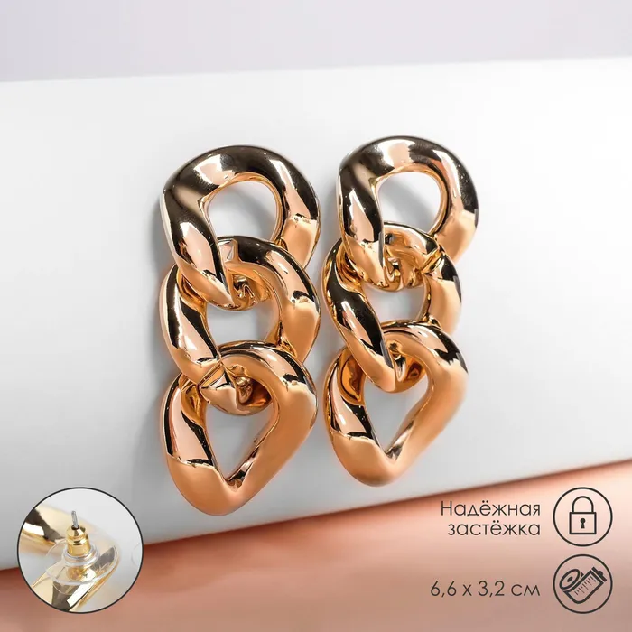 Серьги «Цепь» плоские звенья, цвет золото — Характеристики