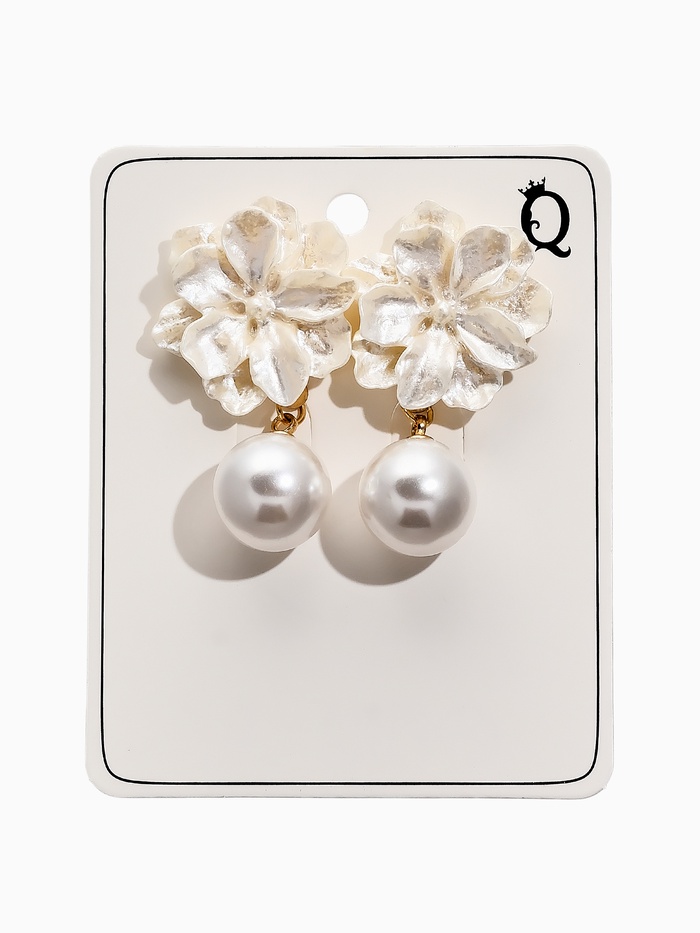 Волшебные серьги с цветочным мотивом и мягким жемчужным эффектом приковывают внимание, словно сказочное растение, раскрытое навстречу солнцу. Бутоны белых цветков нежно окаймляют сверкающие молочные жемчужины, сделанные из полимерного камня высокого качества. Каждое изделие выполнено в традиционной технике с использованием легких металлических компонентов, покрытых красивым серебристым покрытием, добавляющим звуку гламура и праздничности. Классическая застёжка-пусет обеспечивает максимальную легкость и стабильность, позволяя носить украшение весь день без ощущения тяжести.