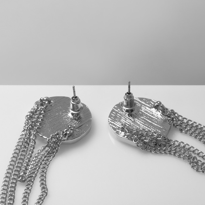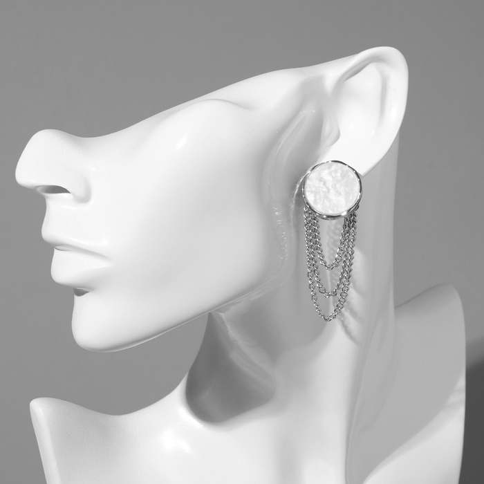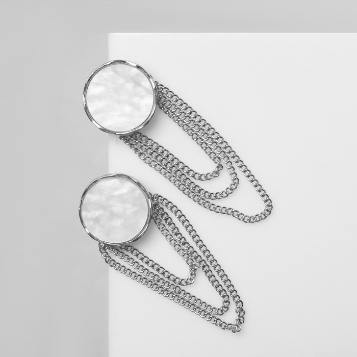 Серьги висячие «Диск» с цепями, цвет белый в серебре — Характеристики