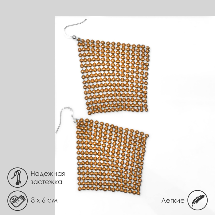 Серьги висячие «Диско» кольчуга объемная, цвет золотой, 8 см — Характеристики