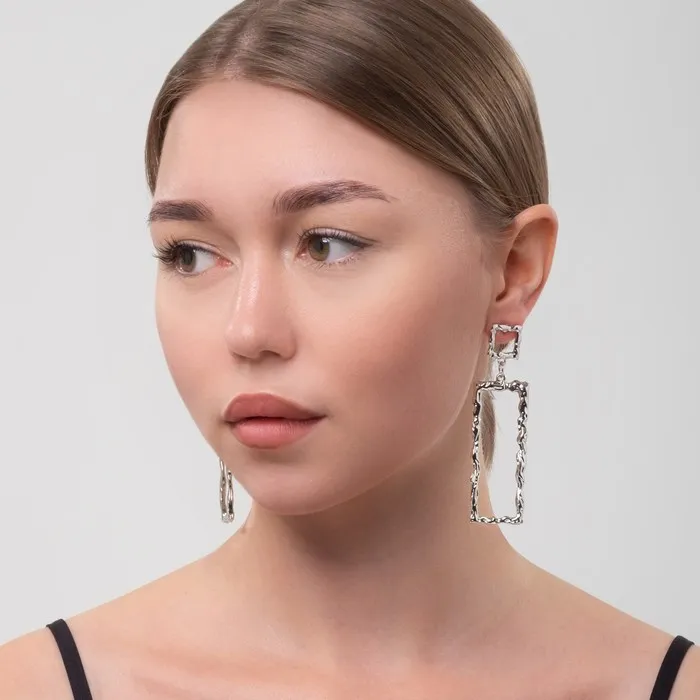 Изящные серьги длиной 7,3 см в серебристом оттенке создают эффектное дополнение к образу, привлекая внимание своей лёгкостью и изяществом. Металлическая основа с аккуратной застёжкой-пусетом обеспечивает надёжную фиксацию и комфорт при ношении, что особенно важно для повседневного использования и праздничных событий.