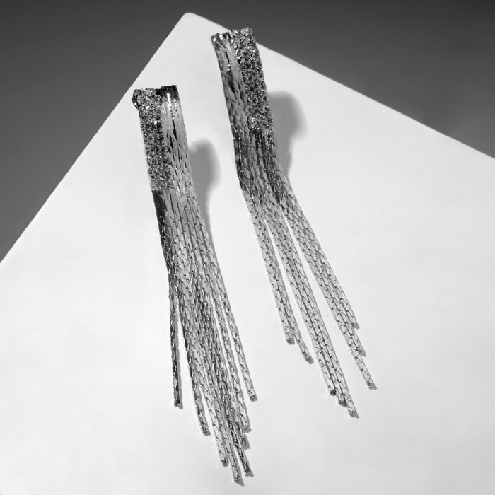 Серьги висячие «Голливуд» дождь, цвет серебро, 7,5 см — Характеристики