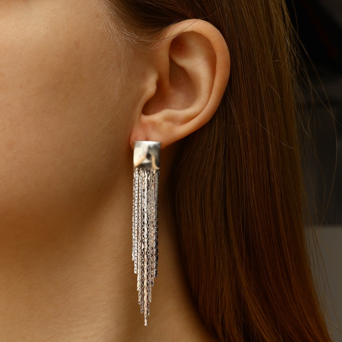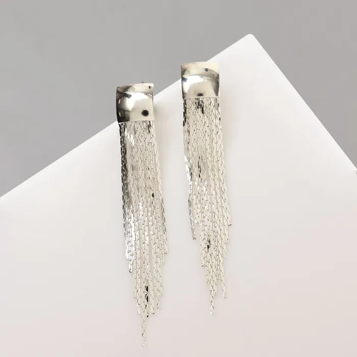 Серьги висячие «Голливуд» квадрат и нити, цвет серебро, 6,5 см — Характеристики