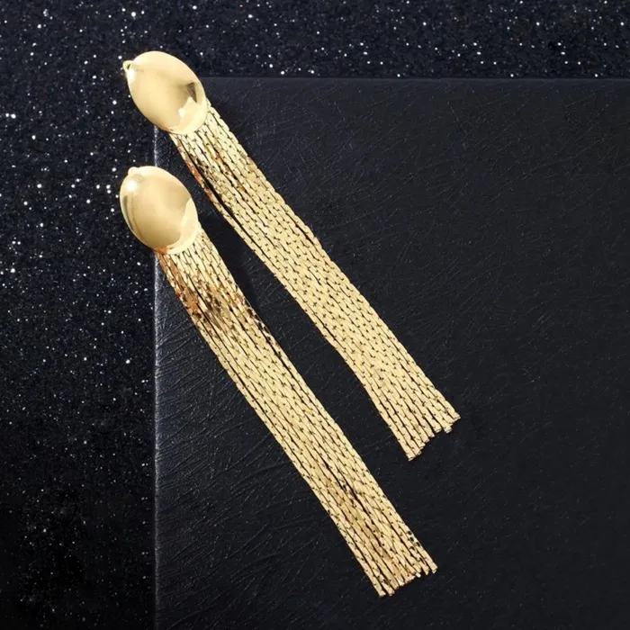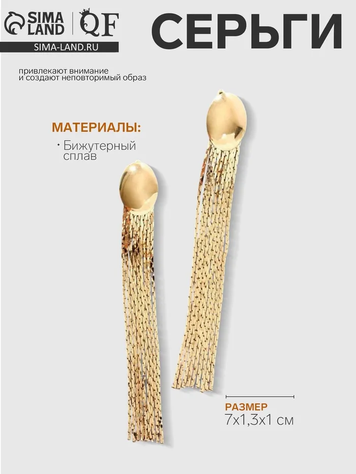 Серьги висячие «Голливуд» овал и нити, цвет золото, 7 см — Характеристики
