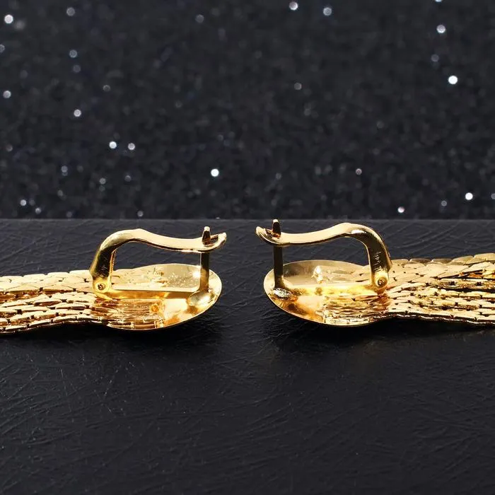 Эффектные серьги длиной 7 см с изящным овальным элементом и тонкими цепочками создают утончённый и воздушный образ. Золотистый металл придаёт украшению благородство и сияние, которые легко подчёркивают женственность и стиль в любой ситуации.
