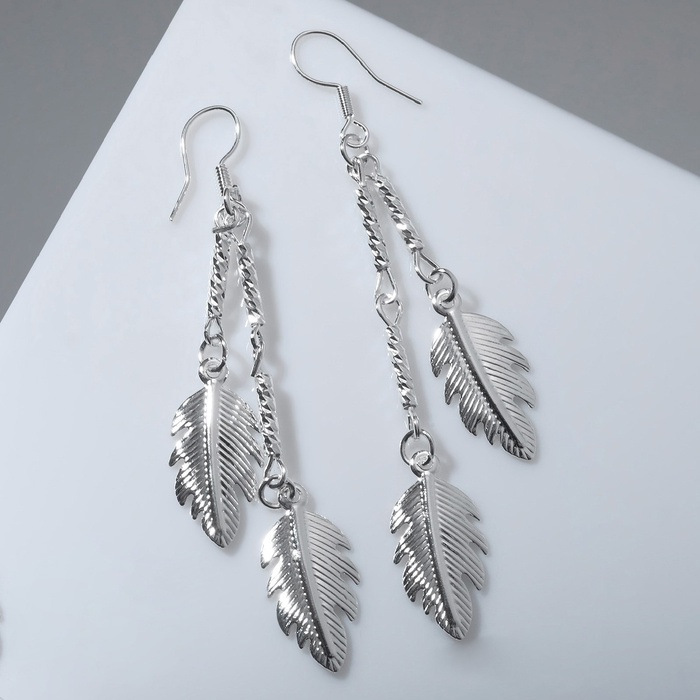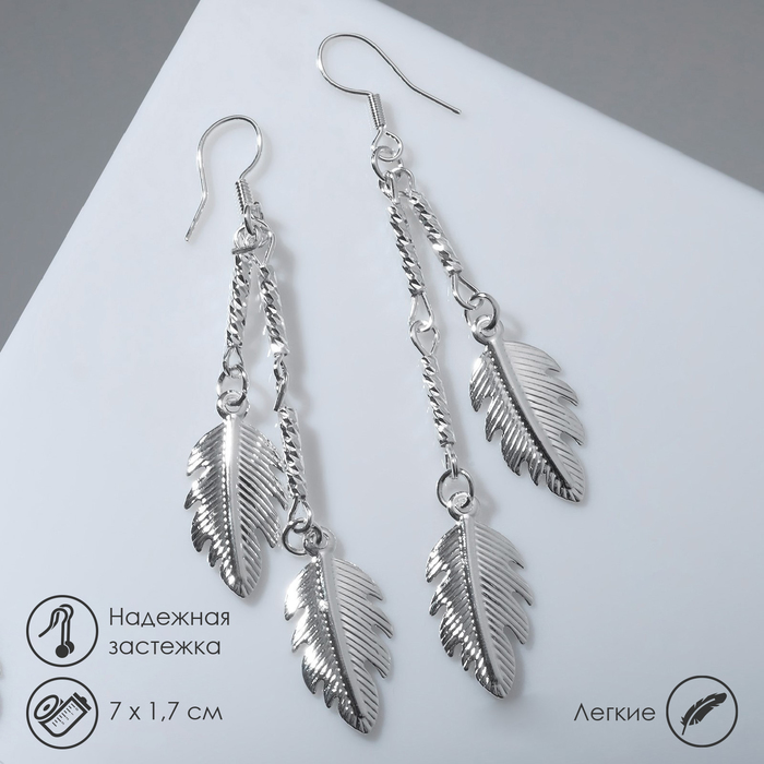 Серьги висячие «Листья» на цепочках, цвет серебро, 7 см — Характеристики