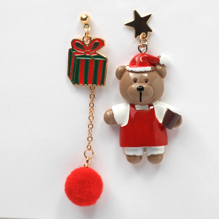 Погрузитесь в атмосферу праздника с яркими серьгами в виде медведей, которые добавят веселья и уюта вашему образу! Эти уникальные украшения, выполненные в красных и зелёных тонах с золотой фурнитурой, идеально подойдут как для женщин, так и для девочек, придавая любому наряду нотку игривости и оригинальности.