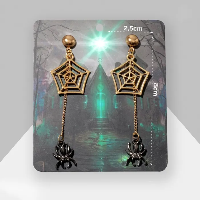 Серьги висячие «Пауки» с паутиной, цвет серый в золоте, 8 см — Характеристики